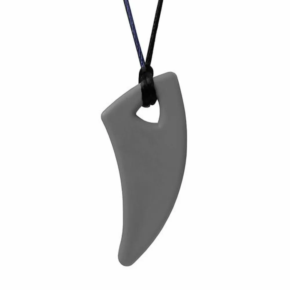 Om det er en sabel tand, en dinosaur tand eller en haj tand vil vi lade op til dig at afgøre. Denne udgave af et tyggesmykke er en for nogle lidt mere sej måde, dit barn kan stille sit behov for at tygge.
