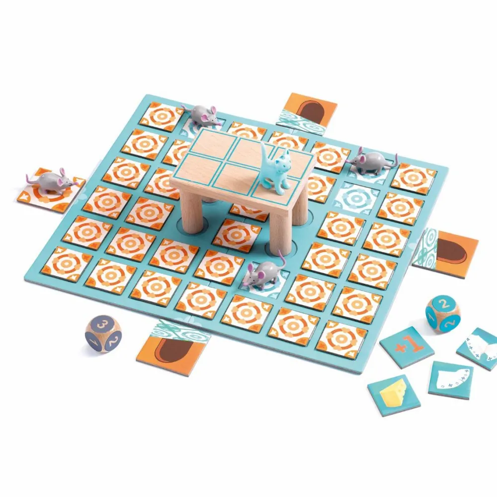 En spiller er katten, de andre er mus, og hver har sin terning.