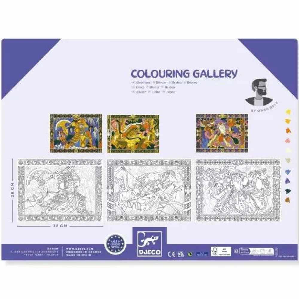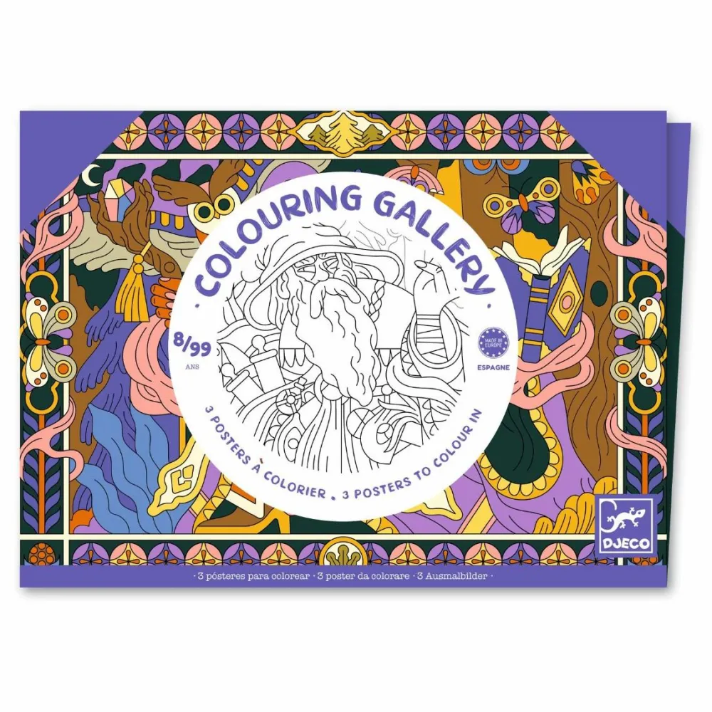 Farvelæg de tre store (28×38 cm) plakater af tykt papir med flotte motiver.