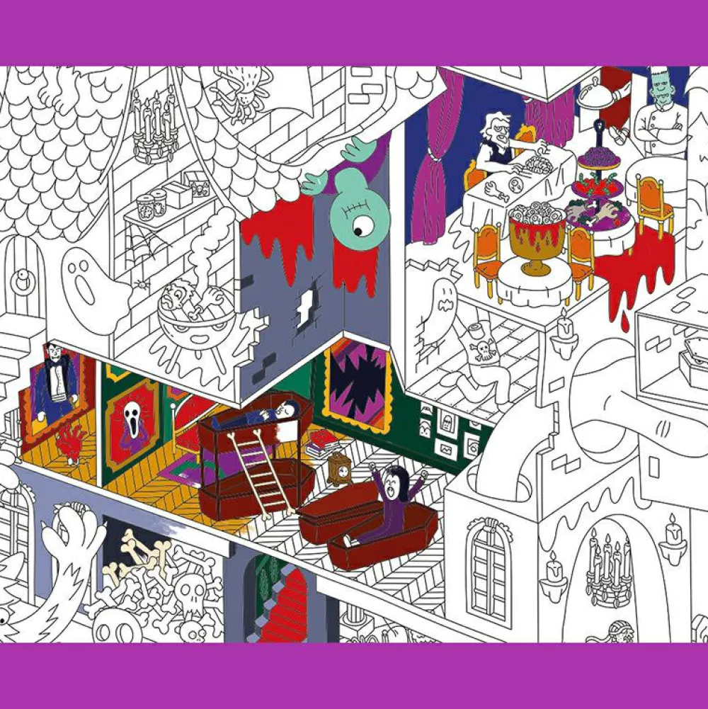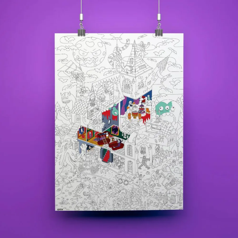 Farvelæg sammen eller når I lige kommer forbi plakaten. Brug den frem til halloween eller som gaveide til børn, der elsker uhygge. Eller farv en ting hver gang I har udført en god gerning eller huslig opgave.
