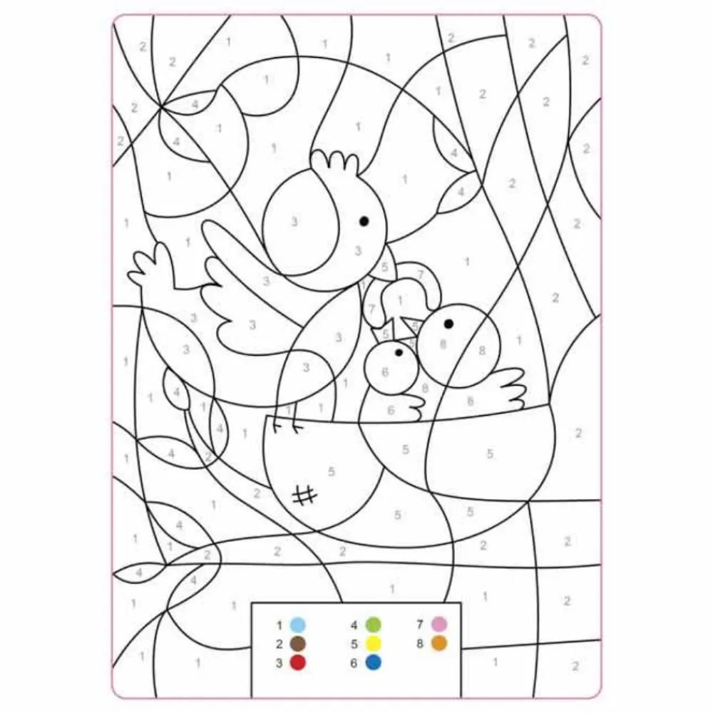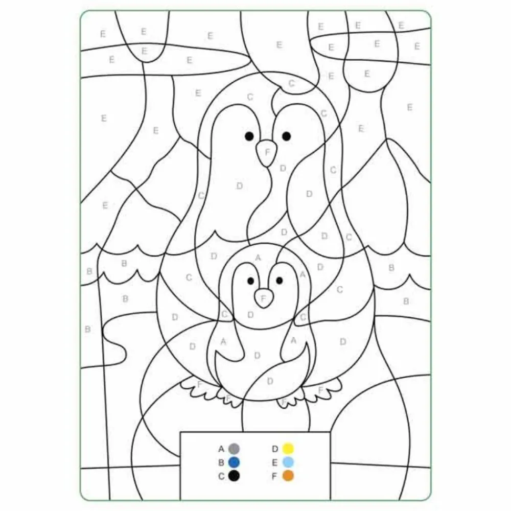 Malebogens farvekoder er både med tal og bogstaver, som dit barn får øvet sig på at genkende, mens tegningerne får flotte farver.
