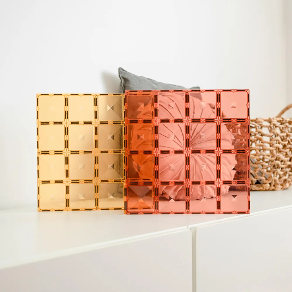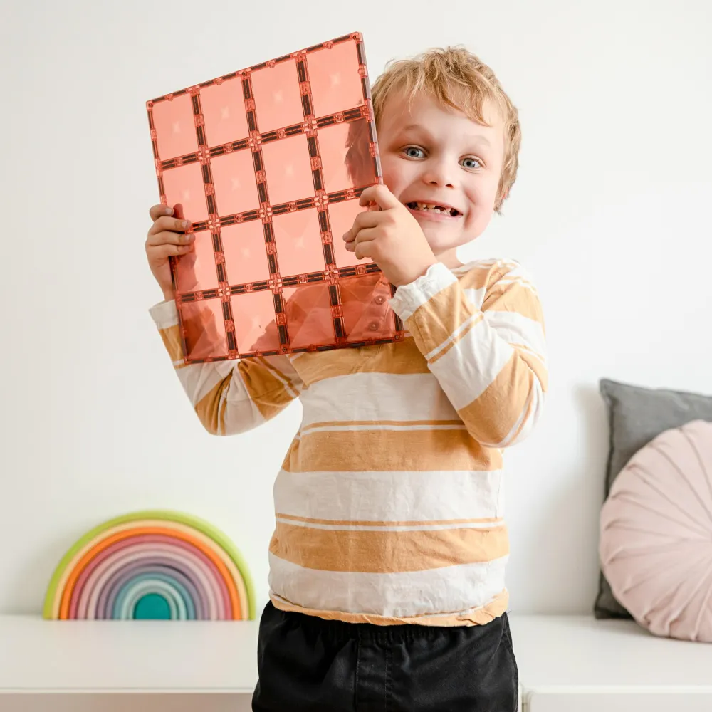 Med de store, 30×30 magnetiske baseplates kan dit barn bygge højere og mere stabilt med de smukke Connetix. De passer også til Magna-Tiles, så har I allerede dem, kan I udvide samlingen med disse byggeplader.