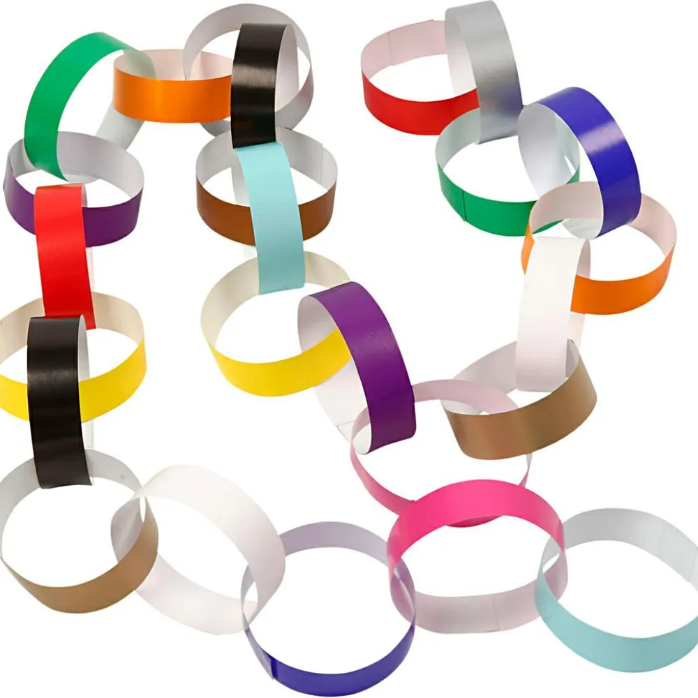 Guirlandestrimler af glanspapir i klare og stærke farver med hvid bagside.