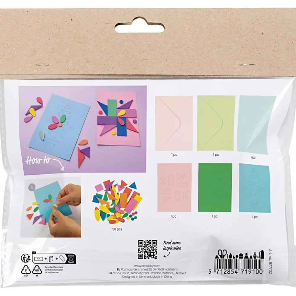 Karton, konvulutter og selvklæbende skumfigurer. Det er egentlig bare det, der her skal til for at dit barn kan fordybe sig i at lave fine mønstre eller måske forme noget genkendeligt ud af figurerne.