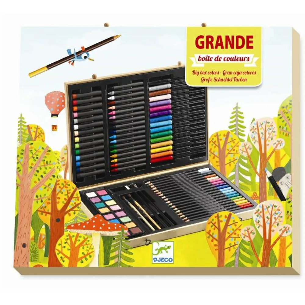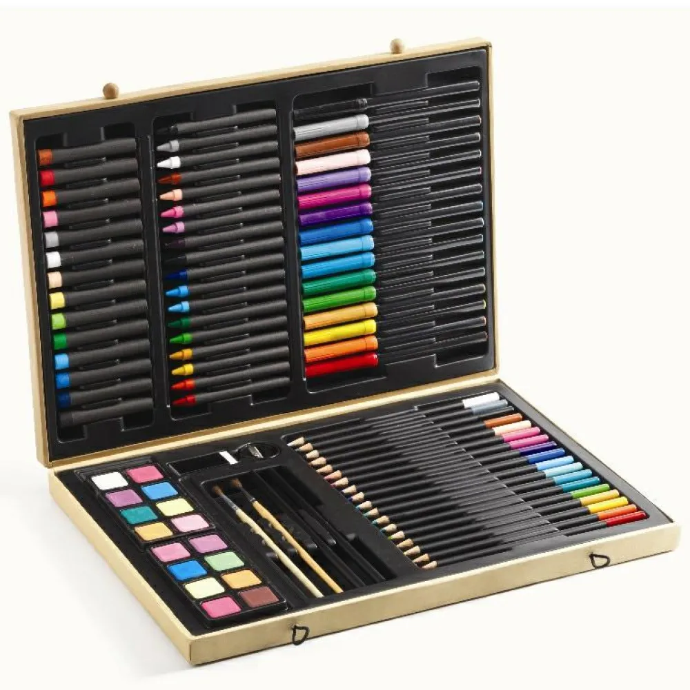 Så er denne store, komplette kuffert det helt rigtige. Den er fyldt med 88 forskellige tegne- og maleredskaber og -materialer til den lille kunstner.