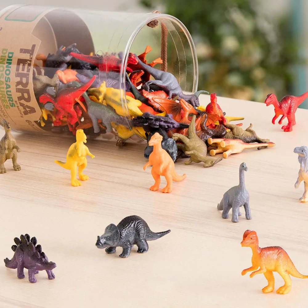 5 sæt af 12 forskellige dinoer. Mon dit barn kender navnet på de fleste af dem?