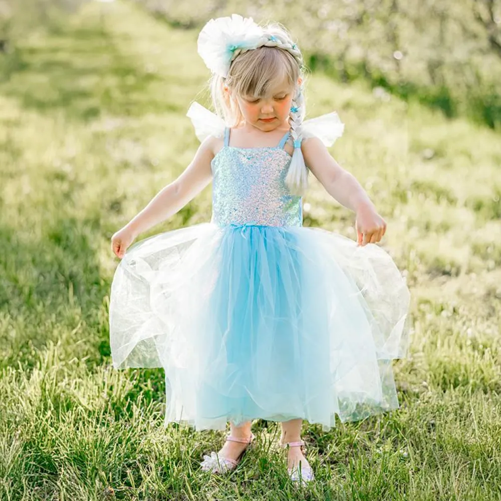 Hårbøjle med den fineste isprinsesse-fletning med snefnug ned langs fletningen og tyl-pynt på toppen.
