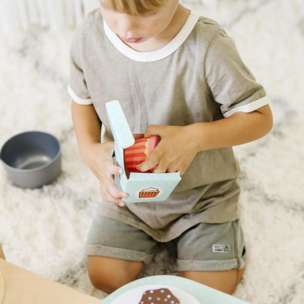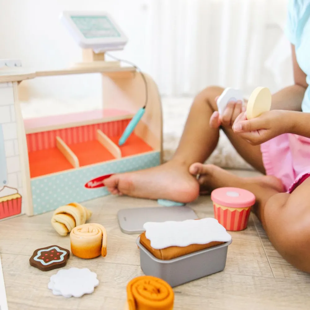 Gennemført lækker bagerbutik med bl.a. røremaskine med piskeris og dejkrog, sprøjtepose, kortterminal, butterdej dit barn selv kan rulle i form, kanelsnegle, glasur til toppen af muffins, ovn som kan åbnes og genanvendeligt loyalitetskort, så kunderne forhåbentlig kommer tilbage.