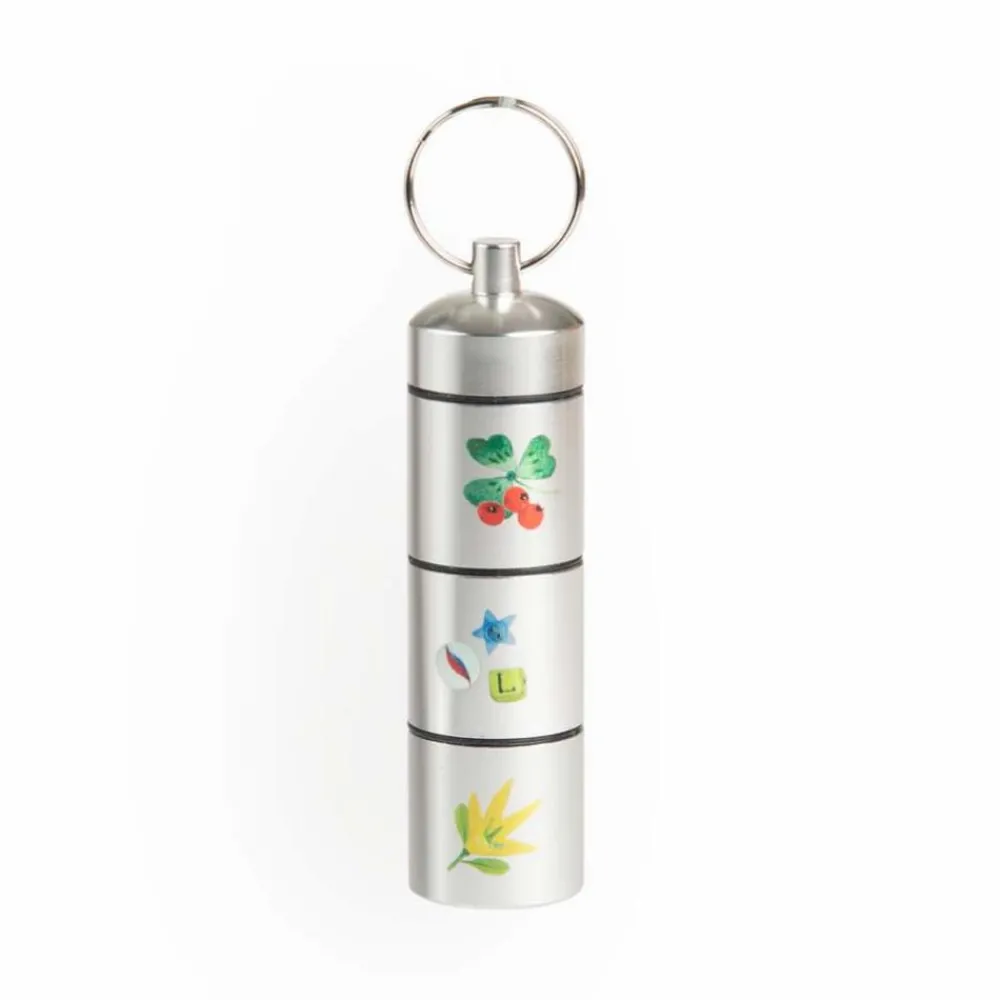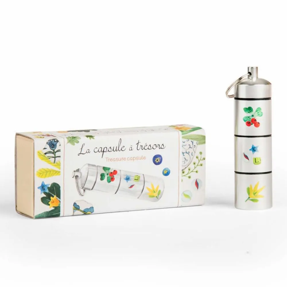 Denne kapsel burde nærmest være obligatorisk udstyr til alle nysgerrige børn. Den måler kun knap 10 cm, og den er lige til at sætte på en strop på en taske eller jakke. Så har dit barn altid 3 små bøtter til smukke blade, særlige frø eller flotte vinger fra en død guldsmed ved hånden.