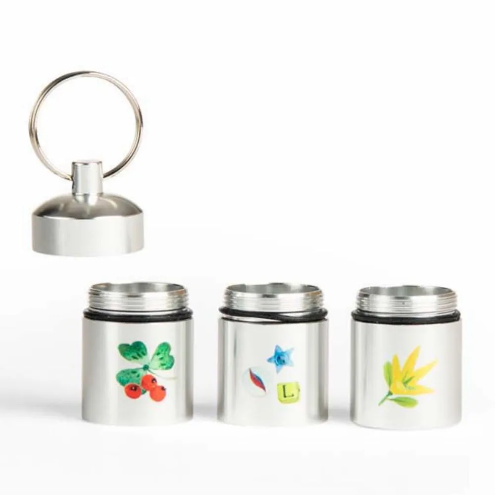 Hver bøtte har låg, og de skrues sammen til én kapsel. Hver bøtte måler under 3 cm.