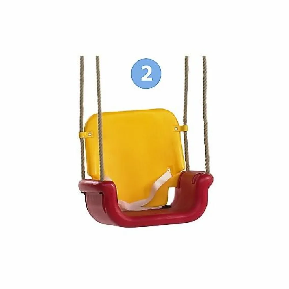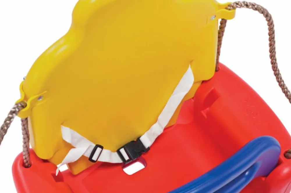 Vær opmærksom på, at dit barn skal kunne sidde med rank ryg uden støtte, før en tur på en gynge af denne type er en god ide.
