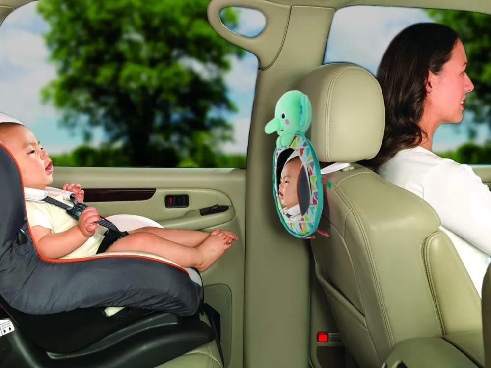 Din babys eget ansigt er den bedste underholdning. Når I skal på tur, så sæt babyspejlet med den søde elefant fast rundt om hovedstøtten, så har dit barn noget sjovt at grine af.