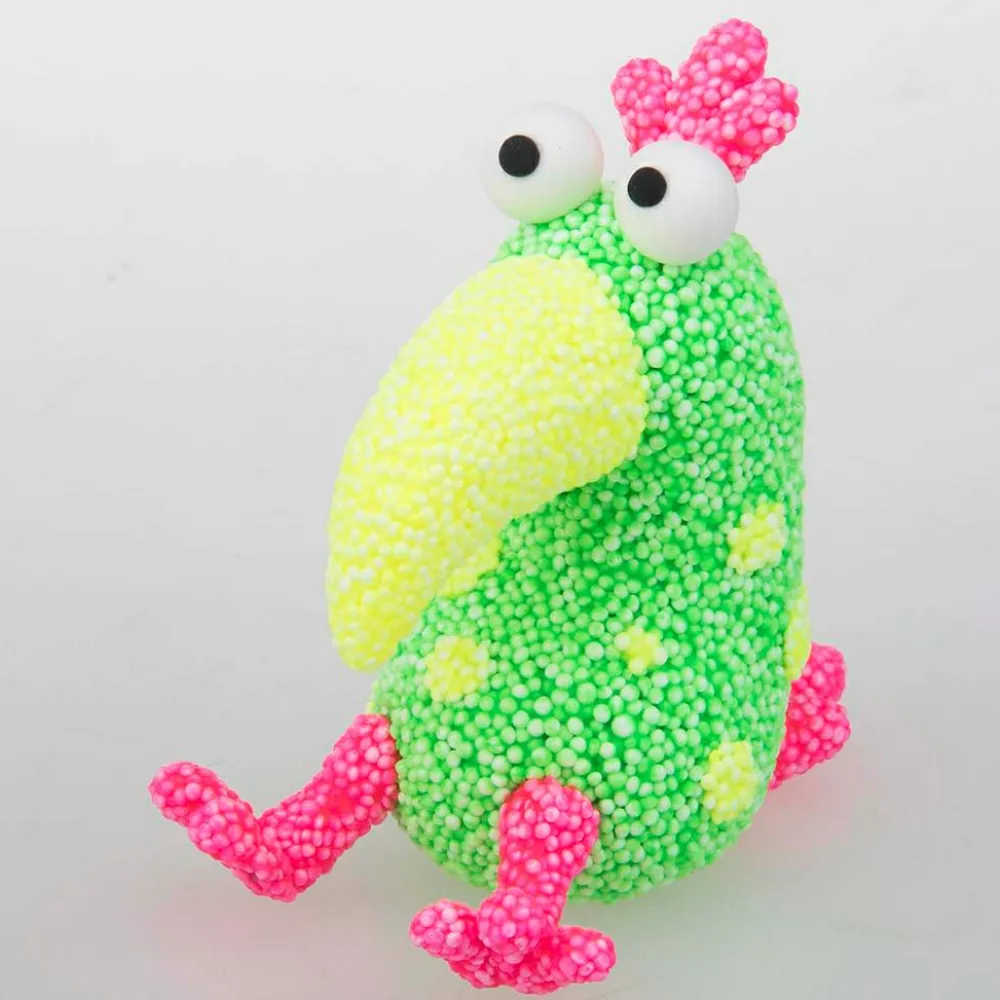 Foam Clay er en blød, smidig masse med små flamingoperler i. Foam Clay føles mere klistret end Silk Clay og er et oplagt valg, hvis I skal dække overfladen på fx flamingofigurer, hjerter eller andre små ting. Så behøver I ikke forme et helt hjerte af Foam Clay, men kan nøjes med at overtrække overfladen. Man kan også sagtens lave små figurer af Foam Clay.