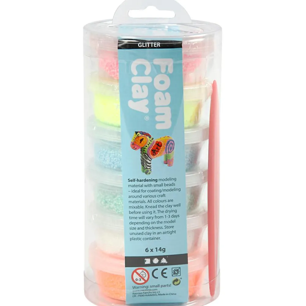 Foam Clay består af vand, vandopløselig polymer, glycerin og perler af polystyren. Der er tilsat godkendt konserveringsmiddel, og det er lever naturligvis op til REACH-forordningen og er CE-mærket.
