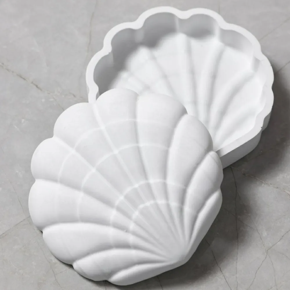Fleksibel silikoneform som du kan bruge igen og igen til at støbe en fin muslinge-æske af beton, gips eller resin-støbemix.