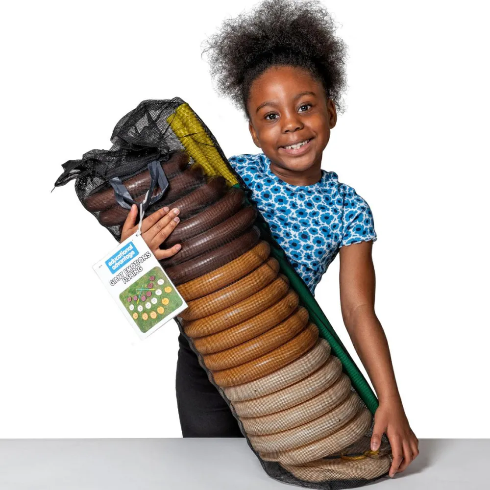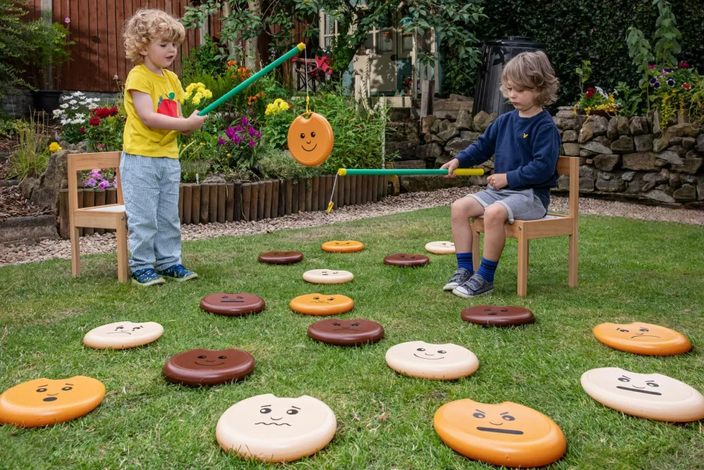 Vi forbinder tit fiskespil med stillesiddende leg som træner finmotorikken, når fiskene skal fanges. Men med dette kæmpe fiskespil skal dit barn være aktiv og bruge sin krop og håndøjekoordination for at få fiskene på krogen.
