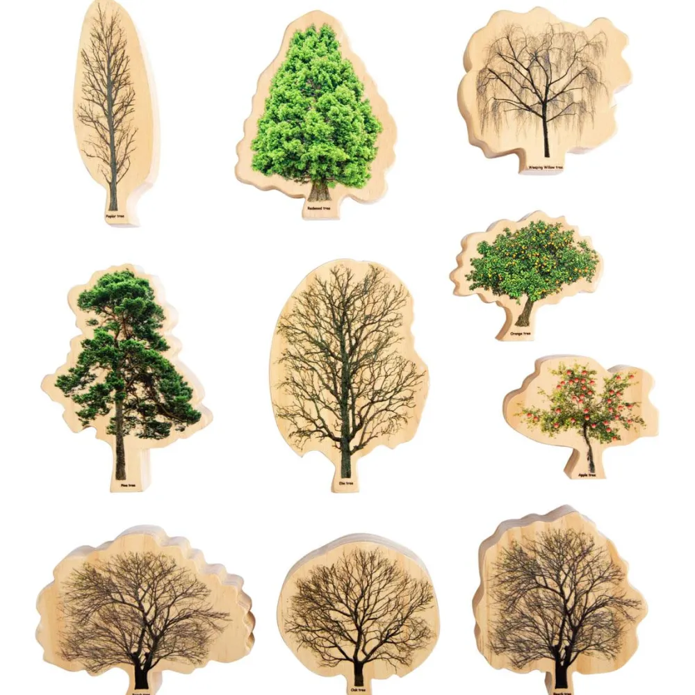 Sættet indeholder elmetræ, eg, bøg, hængepil, nåletræ, ahorn, poppel, fyr, æbletræ og appelsintræ.