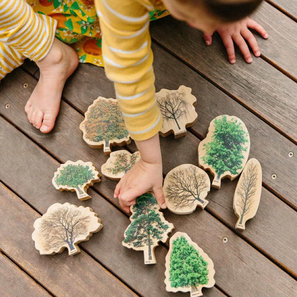 Interesserer dit barn sig for årstidens gang, og hvordan den påvirker naturen omkring os? Måske vil du gerne sætte lidt fut i interessen, eller give dit barn et fint sæt til sorteringsleg. Så er dette sæt med 10 fine træer værd at kigge på.
