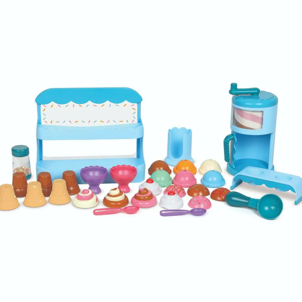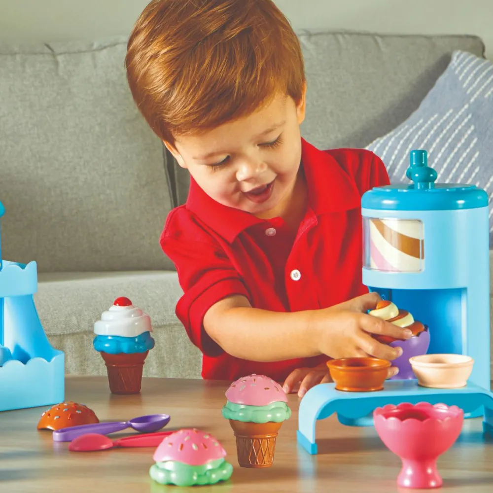 Dejlig leg hvor børnene kan øve sig i at tage imod bestilling eller være kunden, der kommer og køber. I kan eventuelt udvide med matematikleg, så dit barn skal finde på gode is-tilbud og måske lidt mængderabat.