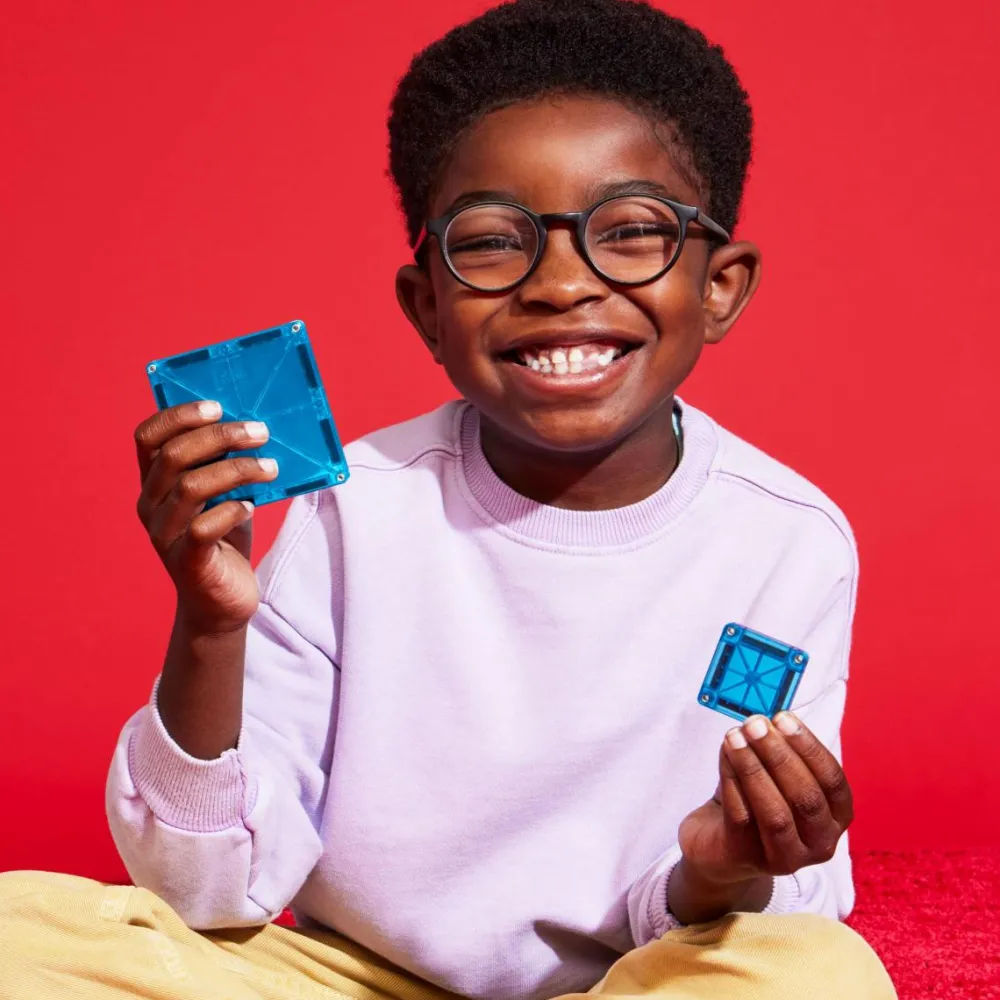 Magna-Tiles er magnetisk kvalitets byggelegetøj, der udfordrer og opfordrer ungerne til at undersøge, hvordan forskellige geometriske former kan bruges til at bygge både helt små og ganske store konstruktioner, ligesom når man fx ser på en bro eller en fodbold. Begge består jo af trekanter og firkanter i et sirligt mønster. Magna-Tiles er magnetiske på alle leder og kanter, så de hæfter til hinanden helt af sig selv. De fås i mange forskellige temaer, udformninger og størrelser. Med spejle, gennemsigtige og med figurer. Der er noget for ethvert barns smag.