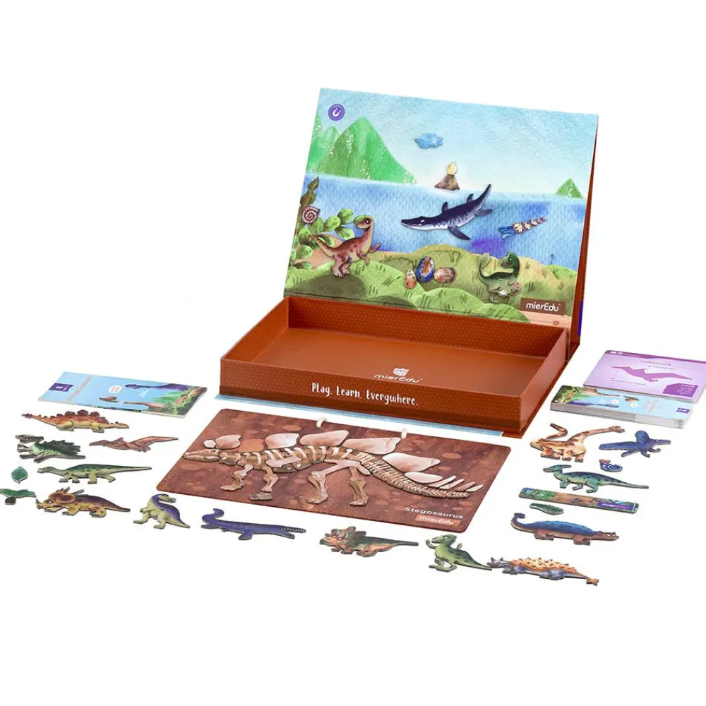 - 44 magnetfigurer,der viser dinosaurer i al deres pragt. Dit barn kan lege rolleleg og fortælle fantastiske historier om dem.