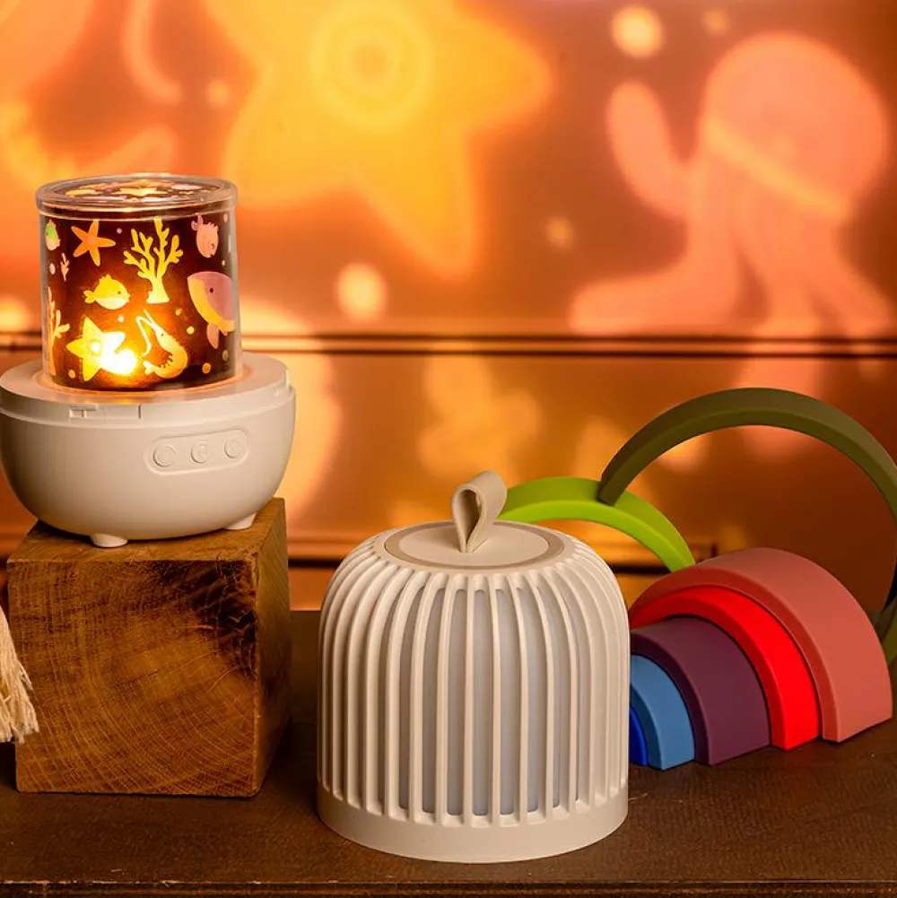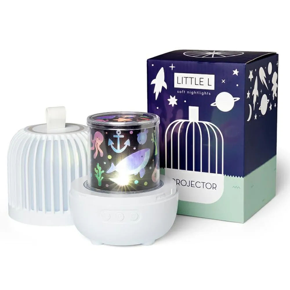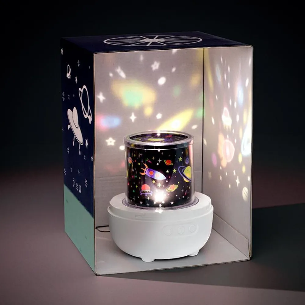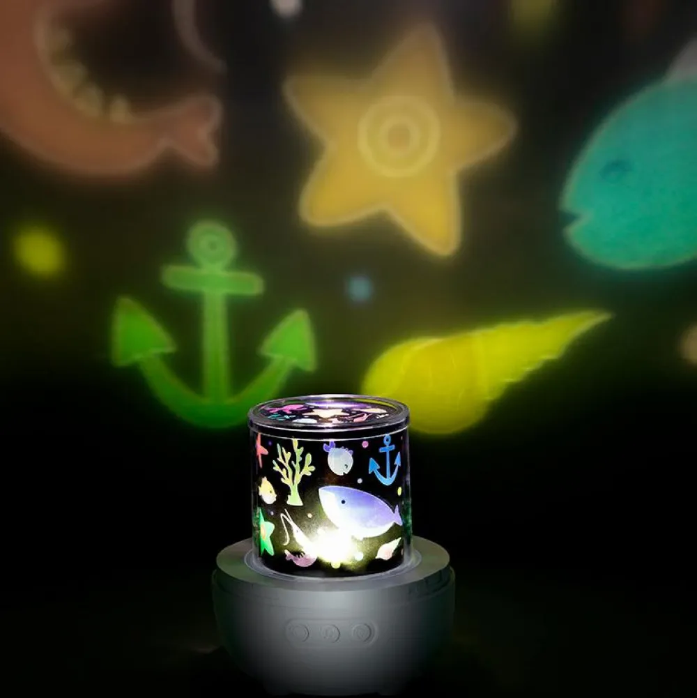 Denne projektor skaber en tryg og fortryllende stemning på børneværelset eller i stuen. Den kan lyse i gult, blåt og hvidt.