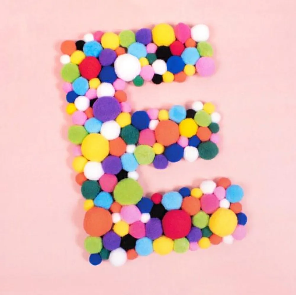 100 pomponer i forskellige størrelser og farver