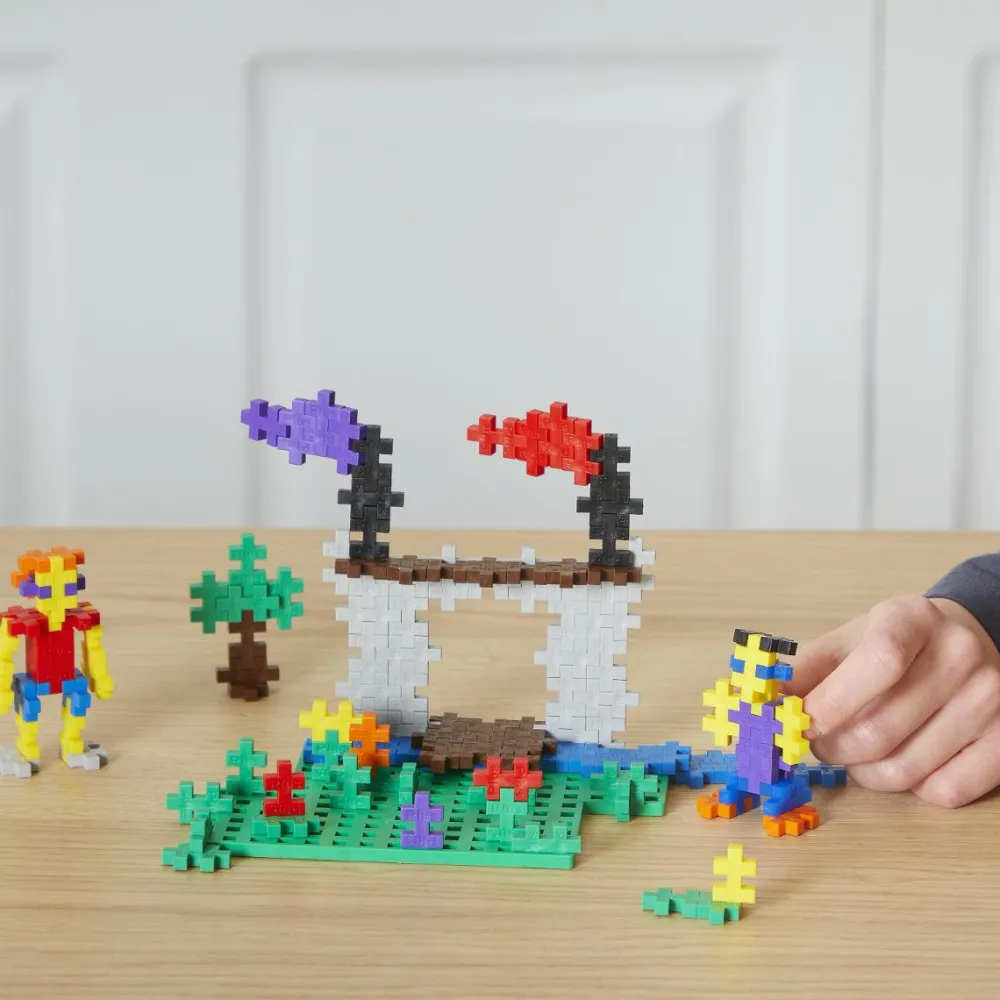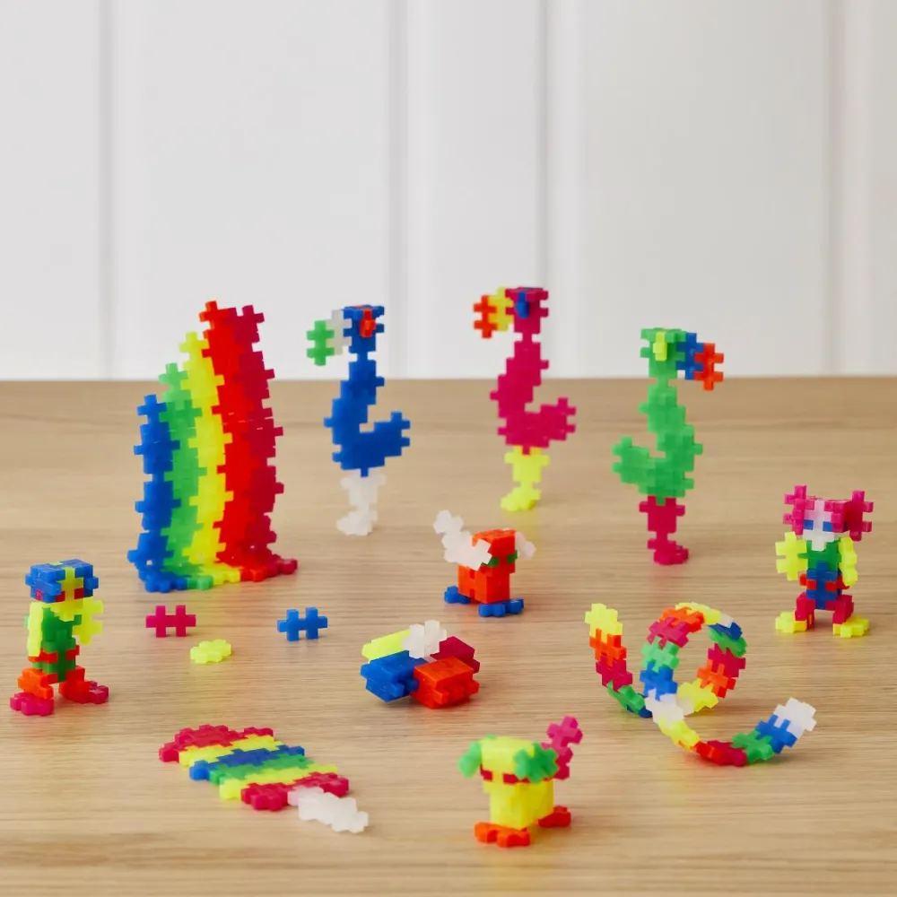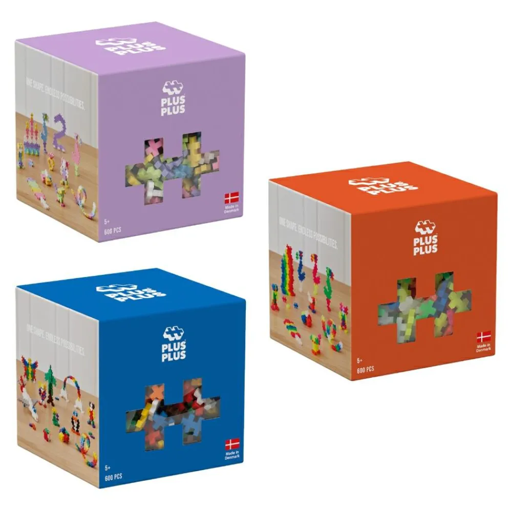 Brikkerne er formet som små plus-tegn og kan sættes sammen på alle leder og kanter – og de fås i små (2 x 1,2 x 0,4 cm) og store (5 x 3 x 1 cm) og i mange farver. Herligt konstruktionslegetøj, som alle børn bliver helt vilde med. Byggeleg med Plus-Plus styrker børnenes sans for geometri og logik. Find masser af byggevejledninger og idéer til at bygge med Plus-Plus på fx YouTube.