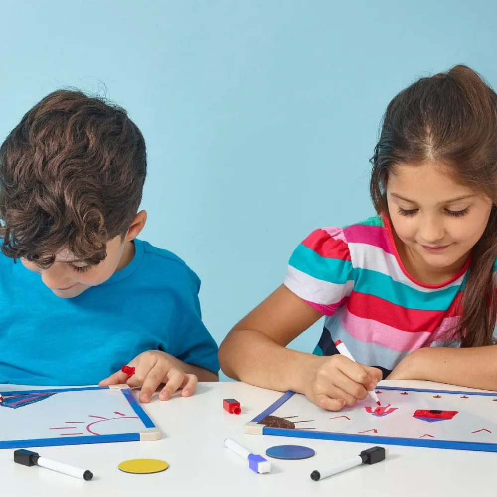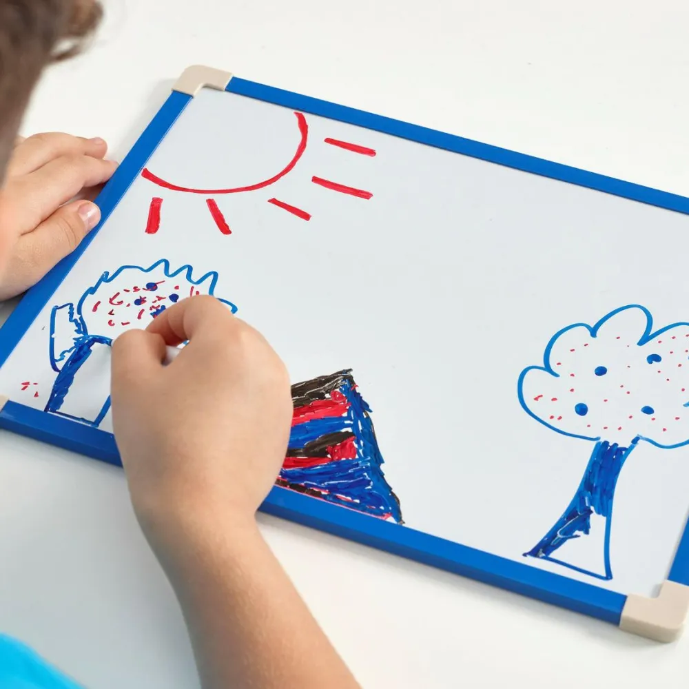 Denne magnettavle har en forstærket ramme, så den er nem at tage med rundt og bruge som evig tegneplade. Er du i hemmelighed lidt træt af dit barns storproduktion af tegninger, som ryder dit lager af papir og ligger alle vegne efter den kreative leg? Så er magnettavlen med tilhørende tusser et godt supplement.