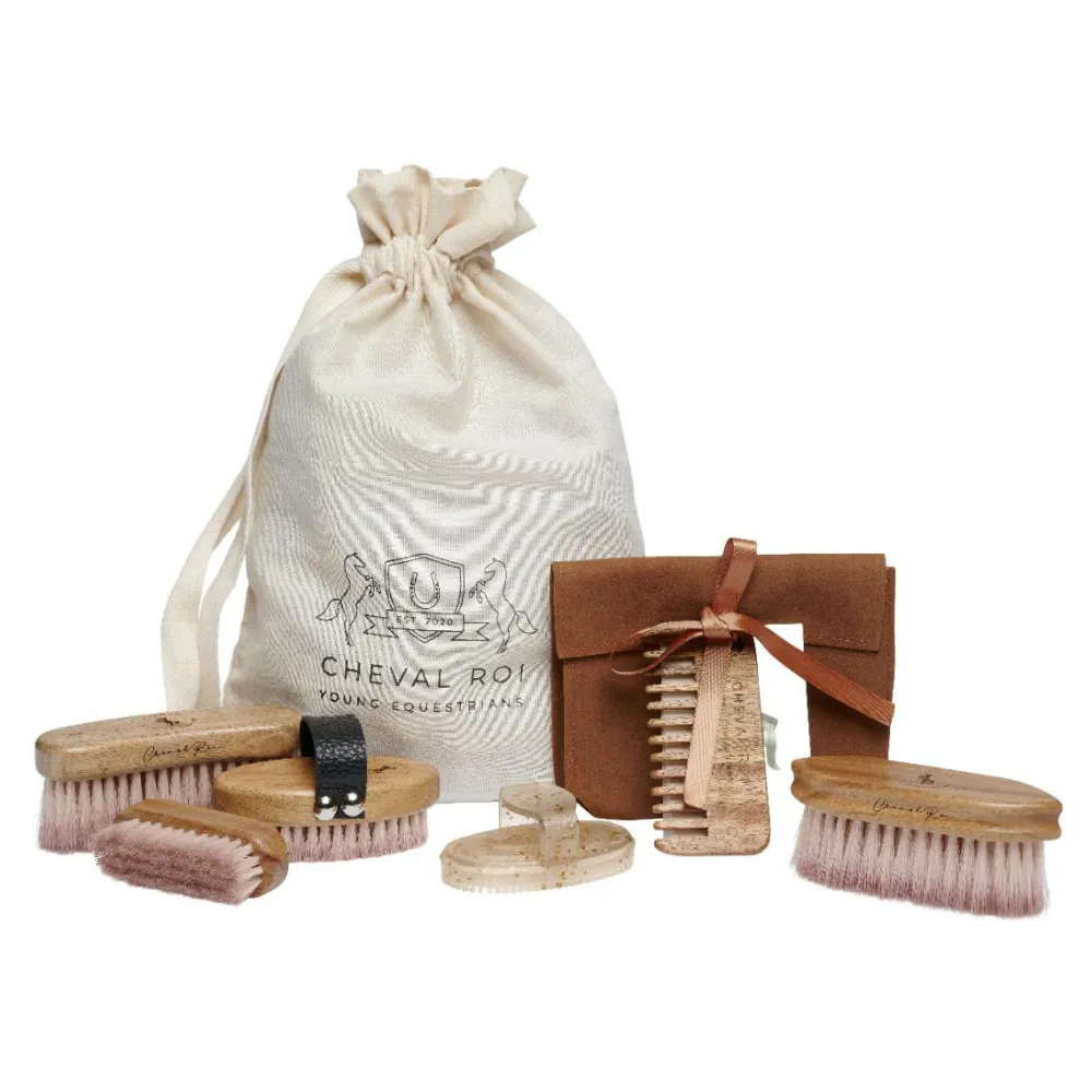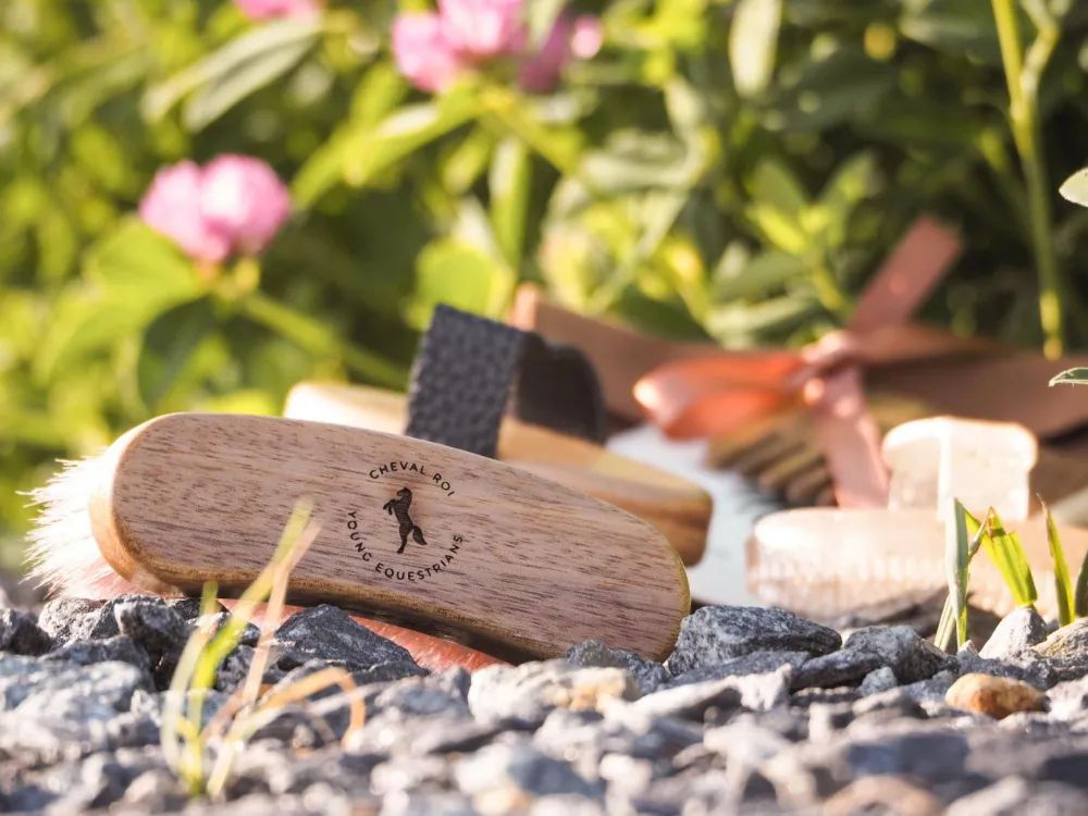 Lækkert sæt med 7 forskellige former for strigler til kæphesten, inkl en meget fin og gylden strigle af plast.