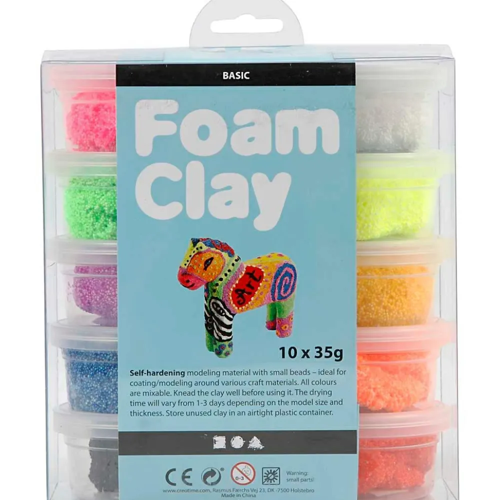 Foam Clay består af vand, vandopløselig polymer, glycerin og perler af polystyren. Der er tilsat godkendt konserveringsmiddel, og det lever naturligvis op til REACH-forordningen og er CE-mærket.