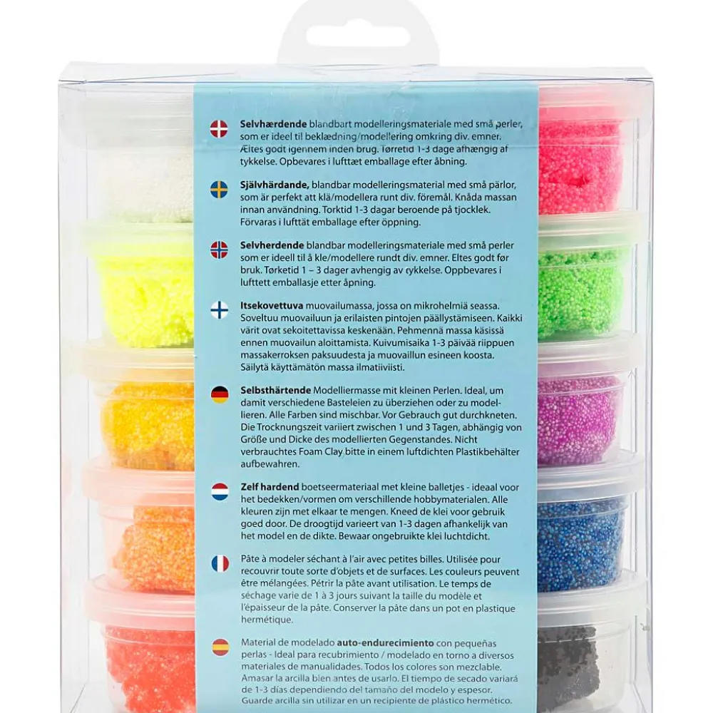 Du kan blande flere farver af Foam Clay. Hvis det bliver hårdt, kan du ælte en lille smule vand i. Det hærder og bliver hårdt ved lufttørring i ca. 1 døgn.