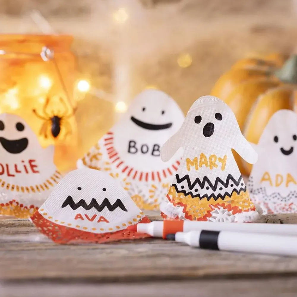 Lav søde spøgelser ud af syv kageservietter og chenille, der på bedste vis skræmmer og spøger – og som er ret nervøse for ild.