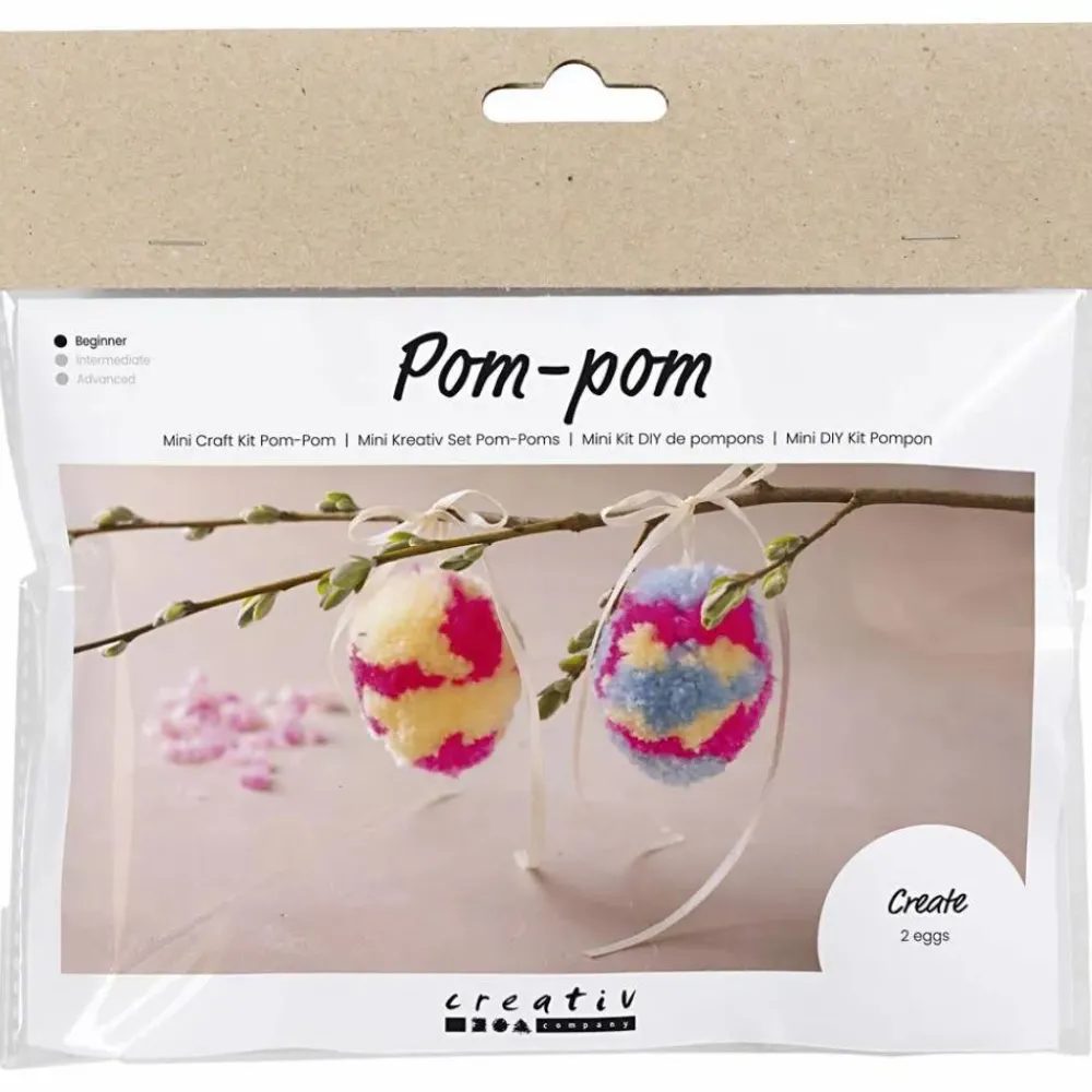 Disse søde påskeæg er lidt anderledes, for de er fremstilet af garn. Ved hjælp af det unikke pompon-værktøj kan dit barn selv lave de fine æg, og værktøjet kan bruges til andre pompon-projekter bagefter.