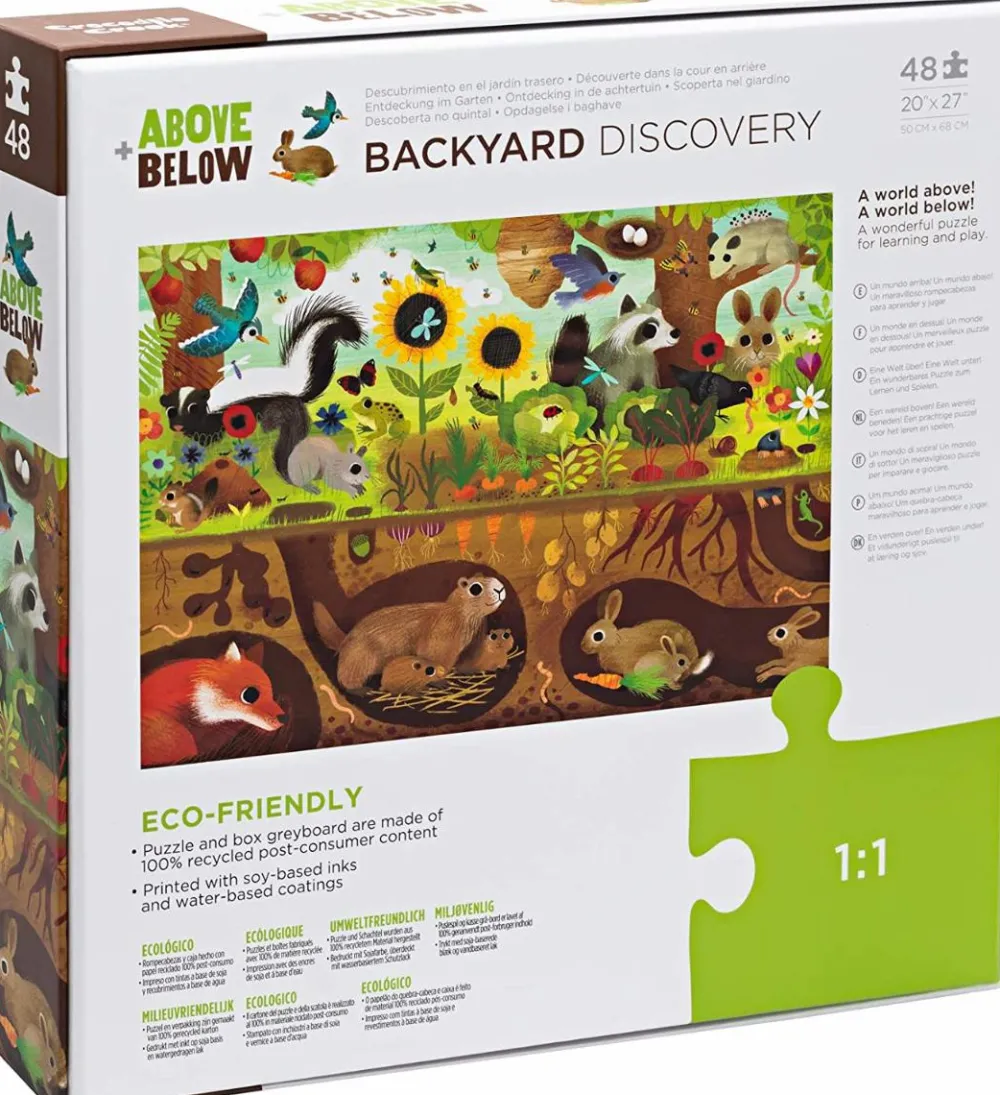 Flot puslespil med masser af kære dyr. Kender dit barn navnet på dem alle sammen? Og hvorfor laver de gange under jorden? Som en god detalje kan I også se køkkenhavens afgrøder og deres rødder.