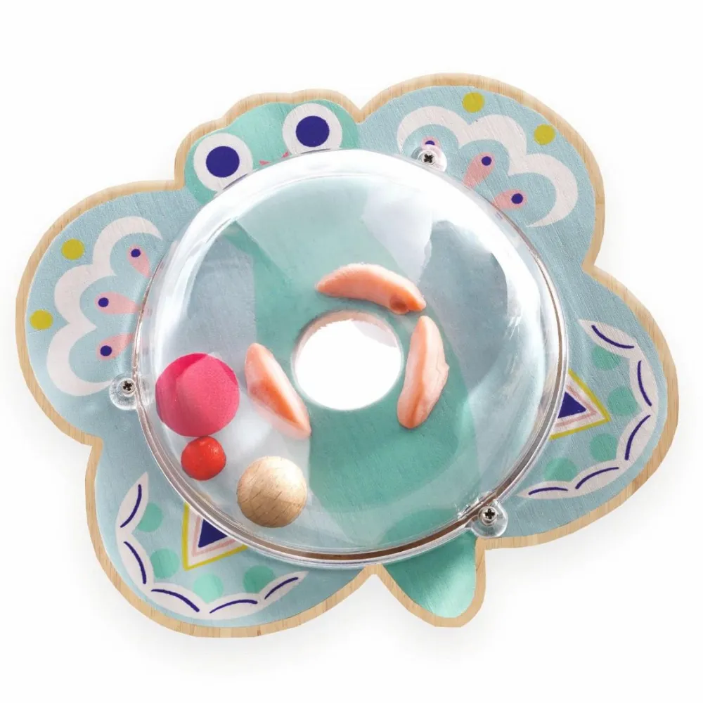 Sjovt babylegetøj fra Djeco, som dit barn kan vippe for at få kuglerne til at trille igennem hullet. Hov .. hvor forsvandt de hen? Sørme om de ikke er på den anden side, så legen kan starte forfra.
