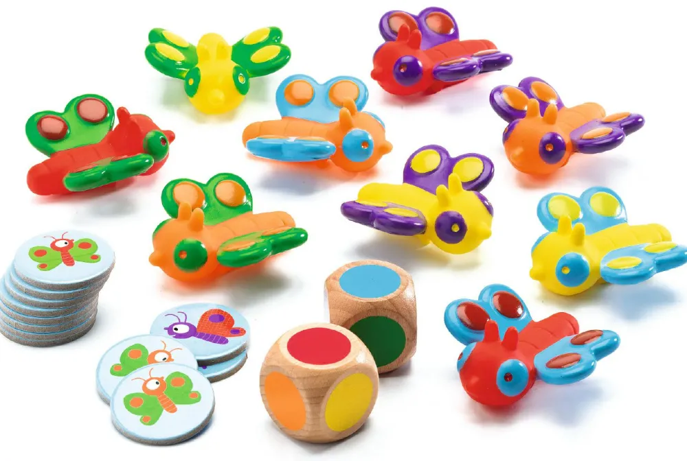 Fang den sommerfugl, der har samme farver som de to terninger. Dette søde børnespil er et fint sted at starte, hvis dit barn gerne vil spille spil.
