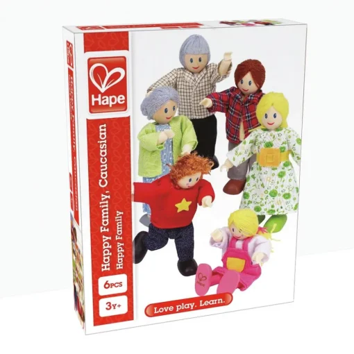 Stor familie til dukkehuset, bestående af to voksne og fire børn, eller er det måske bedsteforældre, børn og børnebørn? De er i hvertfald nu klar til at flytte ind i deres nye hjem.