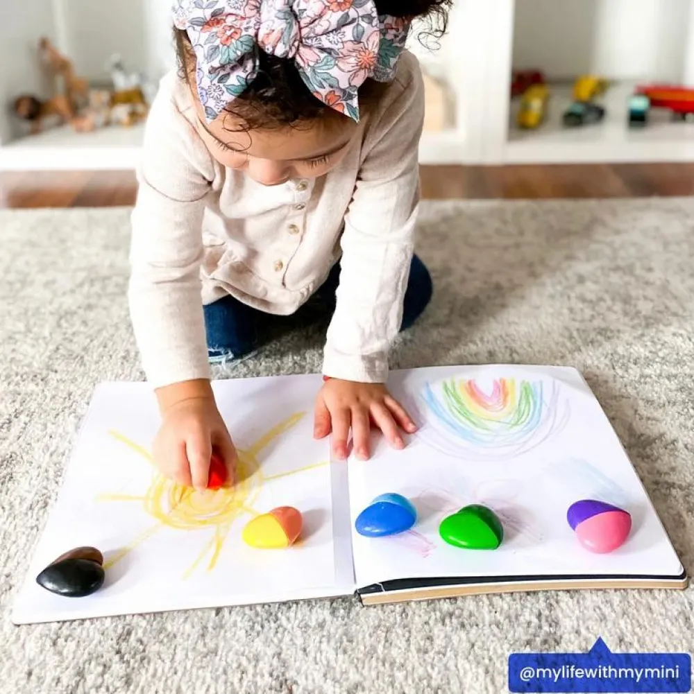 Farvekridtene er sjove at holde om og udfordrer dit barns finmotorik og skrivegreb.