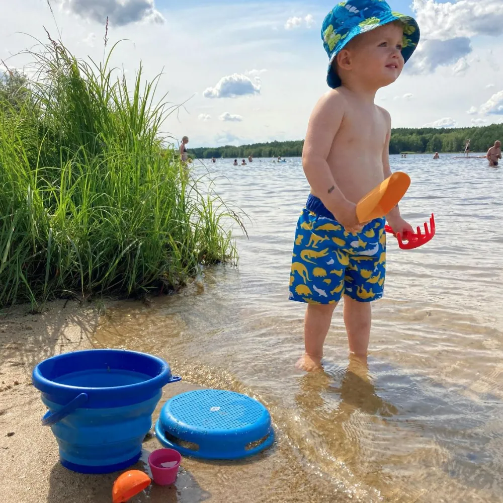 Frem med spand og skovl, fantasi og finmotorik. Tilføjer du vand og mulighed for at undersøge smådyr på stranden, så bliver mulighederne bare endnu flere, mens sand og vand udvikler dit barns følesans.