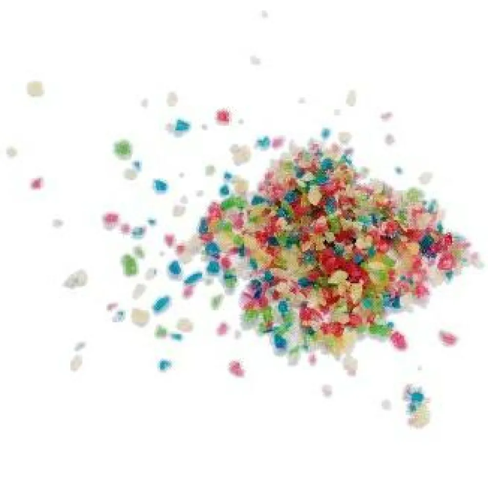 Hæld posens indhold langsomt ud i badevandet, og hør, hvordan de små farvede korn begynder at knitre.