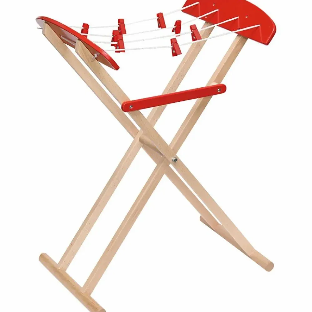 Robust dukke-tørrestativ med fire snore og 8 klemmer til. Så kan dukketøjet eller måske et maleri hænge til tørre.