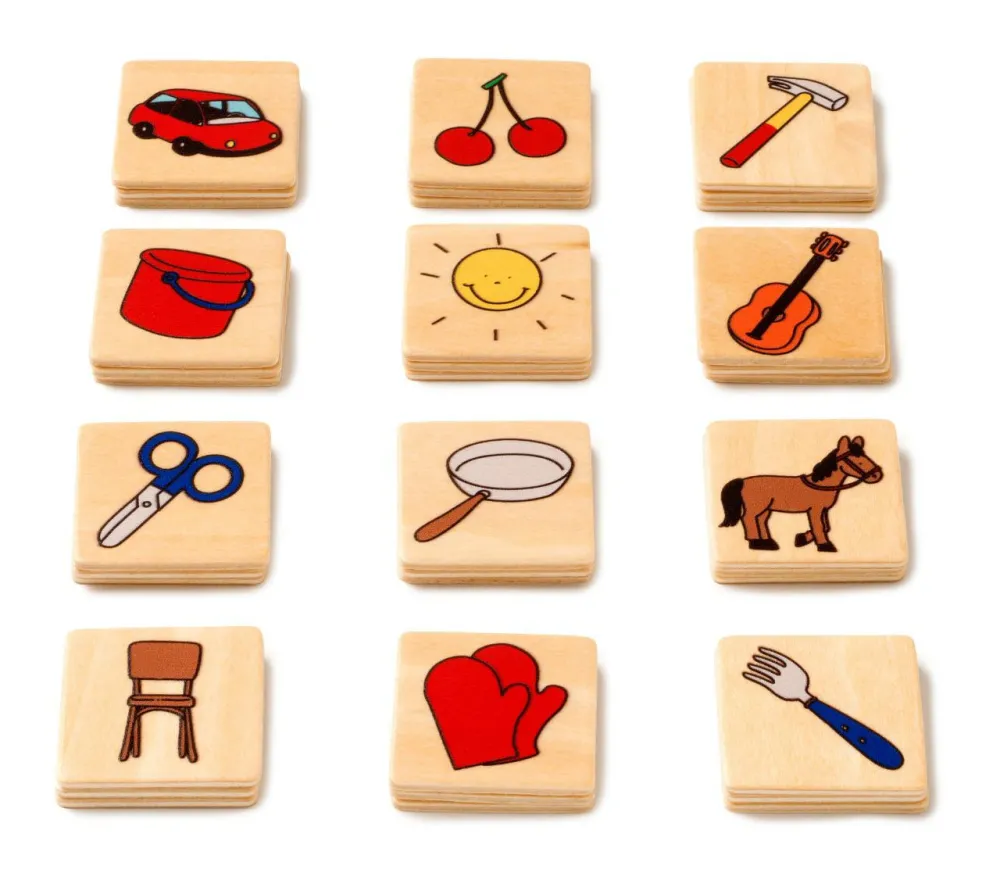 Styrk dit barns ordforråd med dette robuste spil i træ. Her gælder det nemlig om at matche tre billedbrikker af gangen. Hvilke har dit barn sat sammen – og hvorfor? Er de alle spiselige, starter de med S eller har de samme farve?
