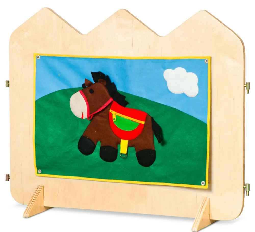 Afskærmningsmodul, hvor flere kan sættes sammen og skabe en opdeling af et rum. Samtidig med at modulet fungerer som afskærmning, er der forskellige aktiviteter på hvert modul, som er udviklende og underholdende for dit barn.