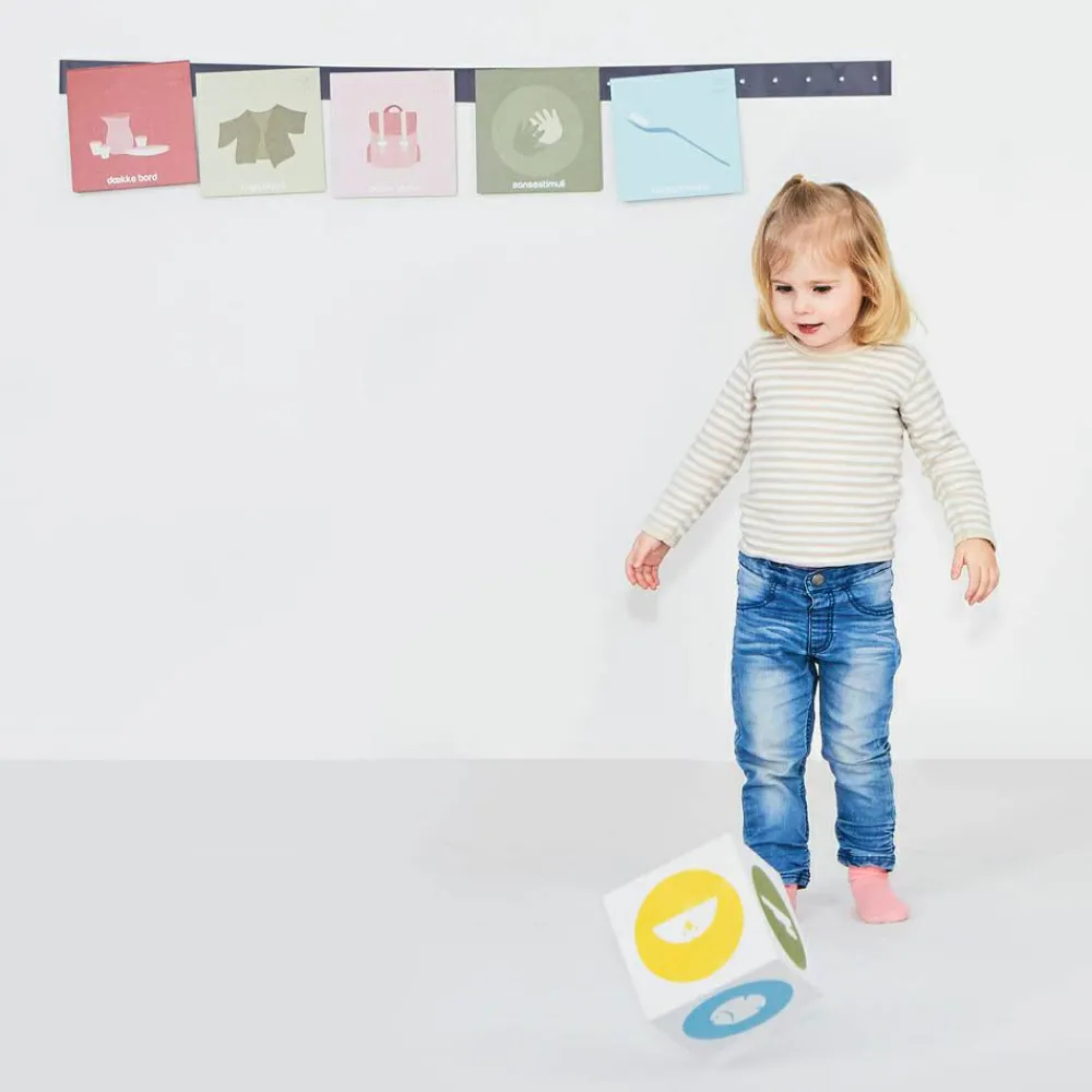 Hæng ophænget op et sted, I kommer ofte forbi. Sæt så de små magnetstykker fast på inspirationskortene og brug dem fx til at vise noget om jeres dag eller om yndlingsaktiviteter.