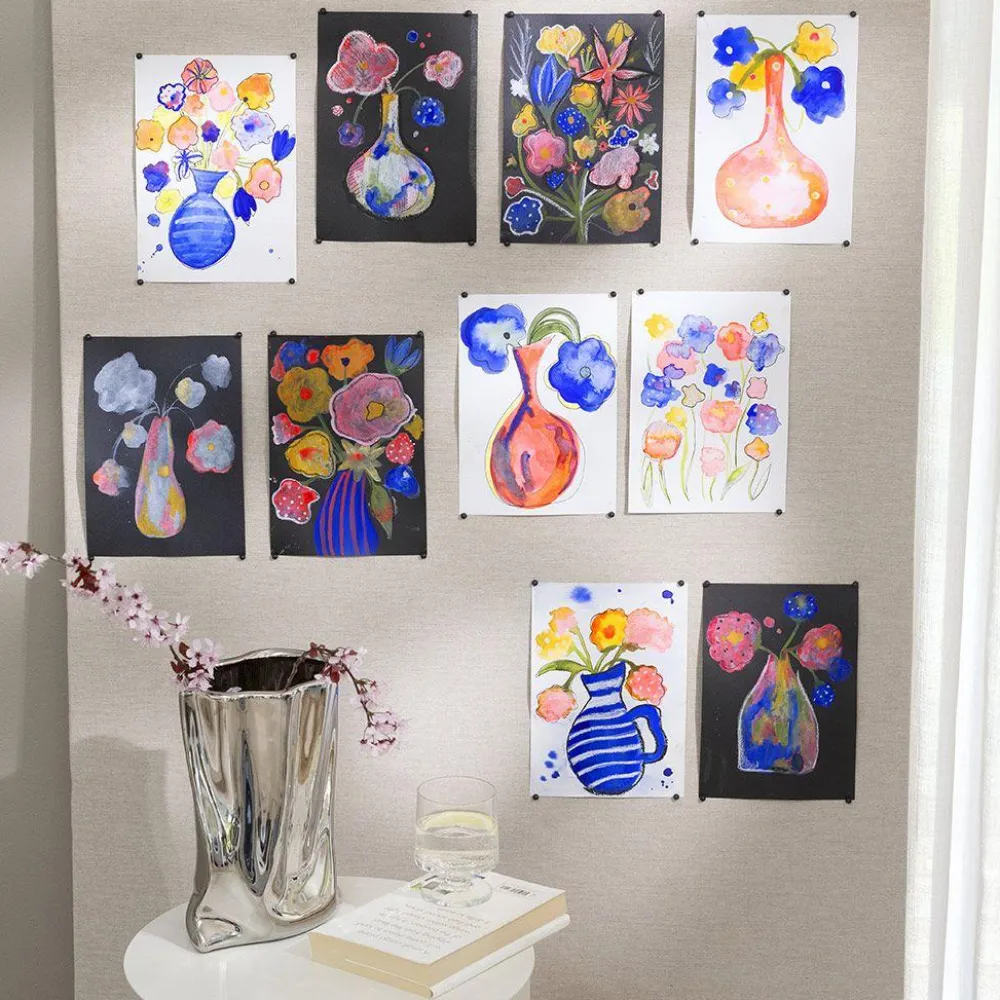 Skab blomstrende kunst med akvarel og oliepastel – eller find på jeres egne motiver.