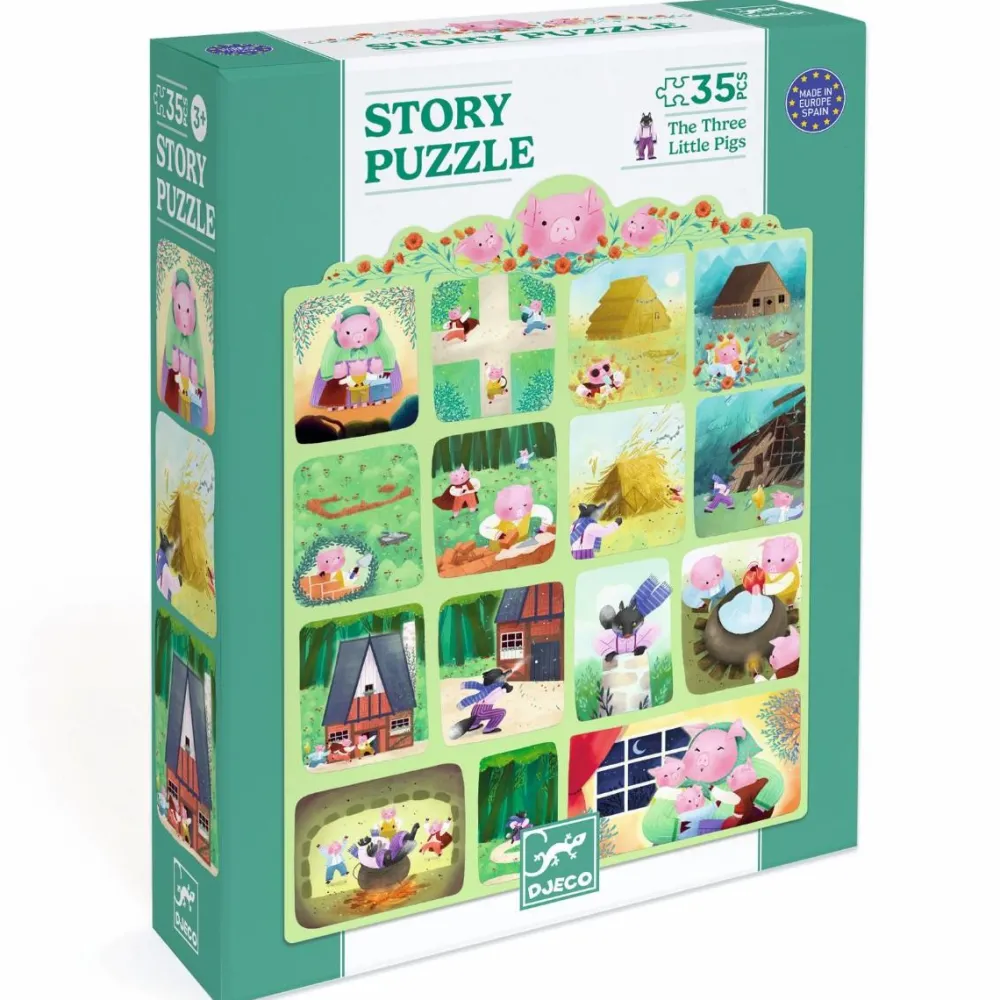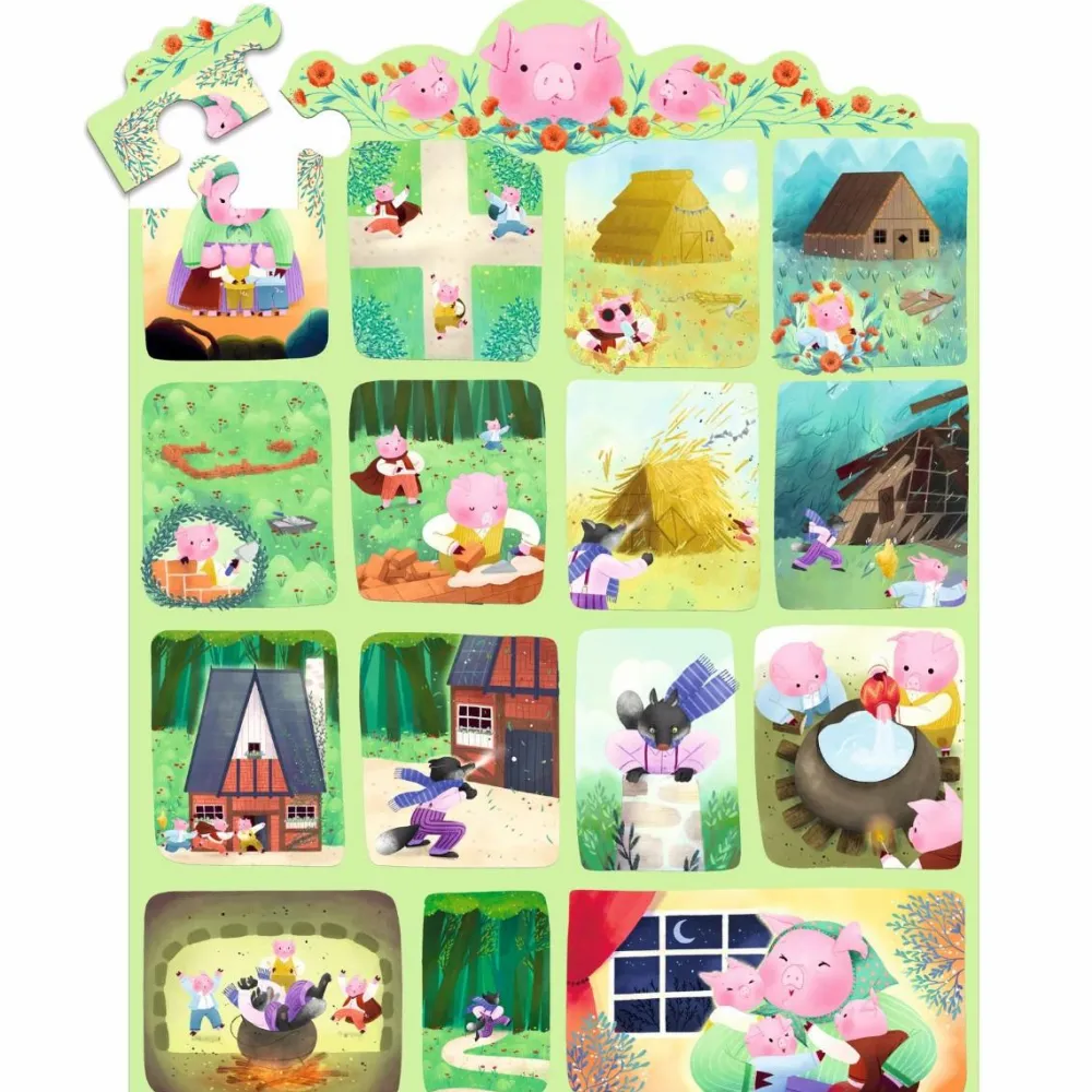Her kan I øve jer i fortællingen om De 3 små grise, mens I falder til ro og lægger puslespillet.