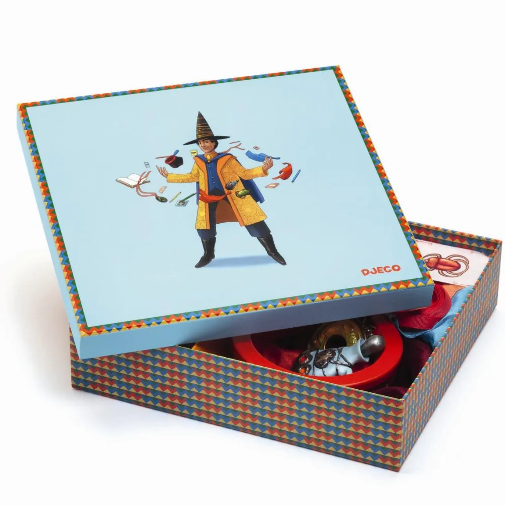 Sæt med rekvisitter til 20 forbløffende og måske ligefrem kæbetabende trylletricks, som er udviklet i samarbejde med professionelle trykkekunstnere.