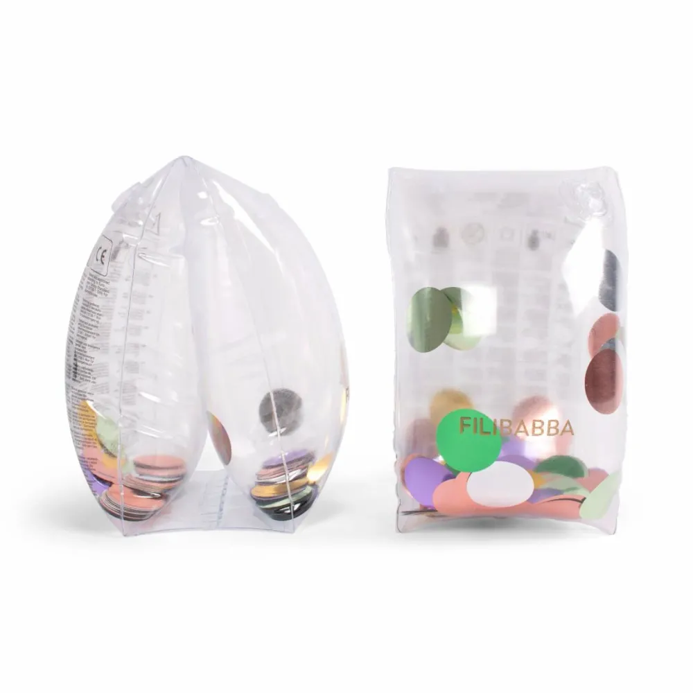 Med den sjove konfetti bliver det ekstra sjovt at have badevinger på i svømmeren eller ved stranden som lidt ekstra tryghed til nye vandhunde.