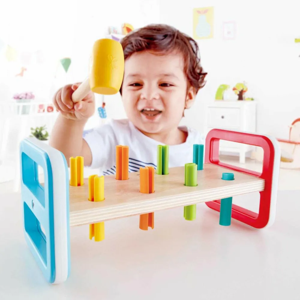 Sjovt og godt udtænkt hammerbræt i klare farver.